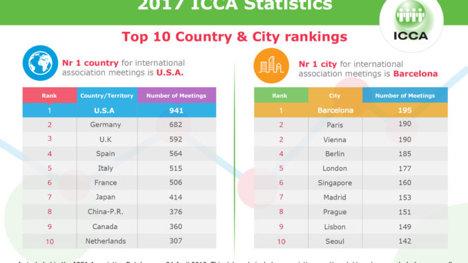 The full ICCA statistics reports are available now to members only via ICCA’s Destination Comparison Tool. The rankings for all countries and cities will be released to the public in mid-June.