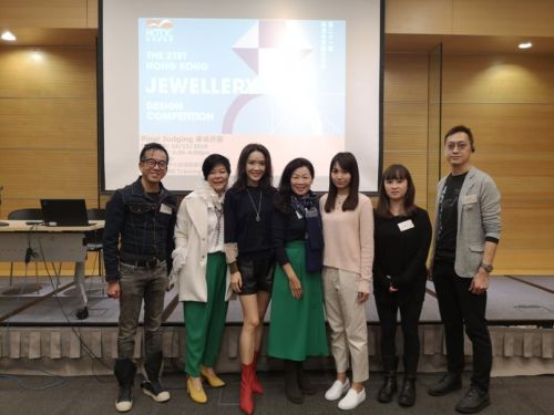 The judging panel comprising: Kwong’s Art Jewellery Trading Company & My Jewelry Founder Mark Ho; Co-Wear Int’l Ltd Design Director Hidy Ng; Vice Chairman, the Board of Trustees, Wai Yin Association Anne Heung; Headragon Ltd Director Pinky Seung, katetsui.com Founder Kate Tsui; DORIS KATH Creative Director Doris Kath Chan; and Ka Shing Jewellery Designer Robin Lai (L-R).